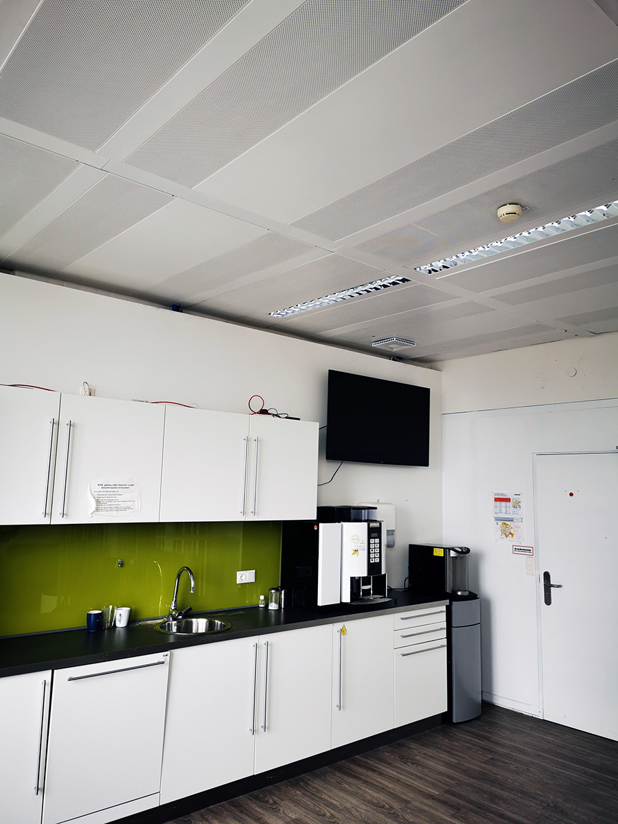 - Abgehängte Decken mit ausreichend Platz für individuelle Versorgungskanäle